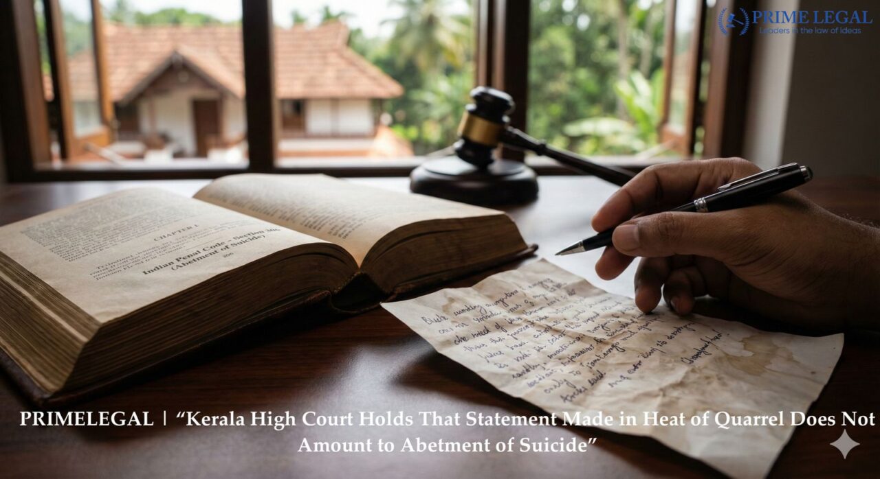 PRIMELEGAL | “Kerala High Court Holds That Statement Made in Heat of Quarrel Does Not Amount to Abetment of Suicide”