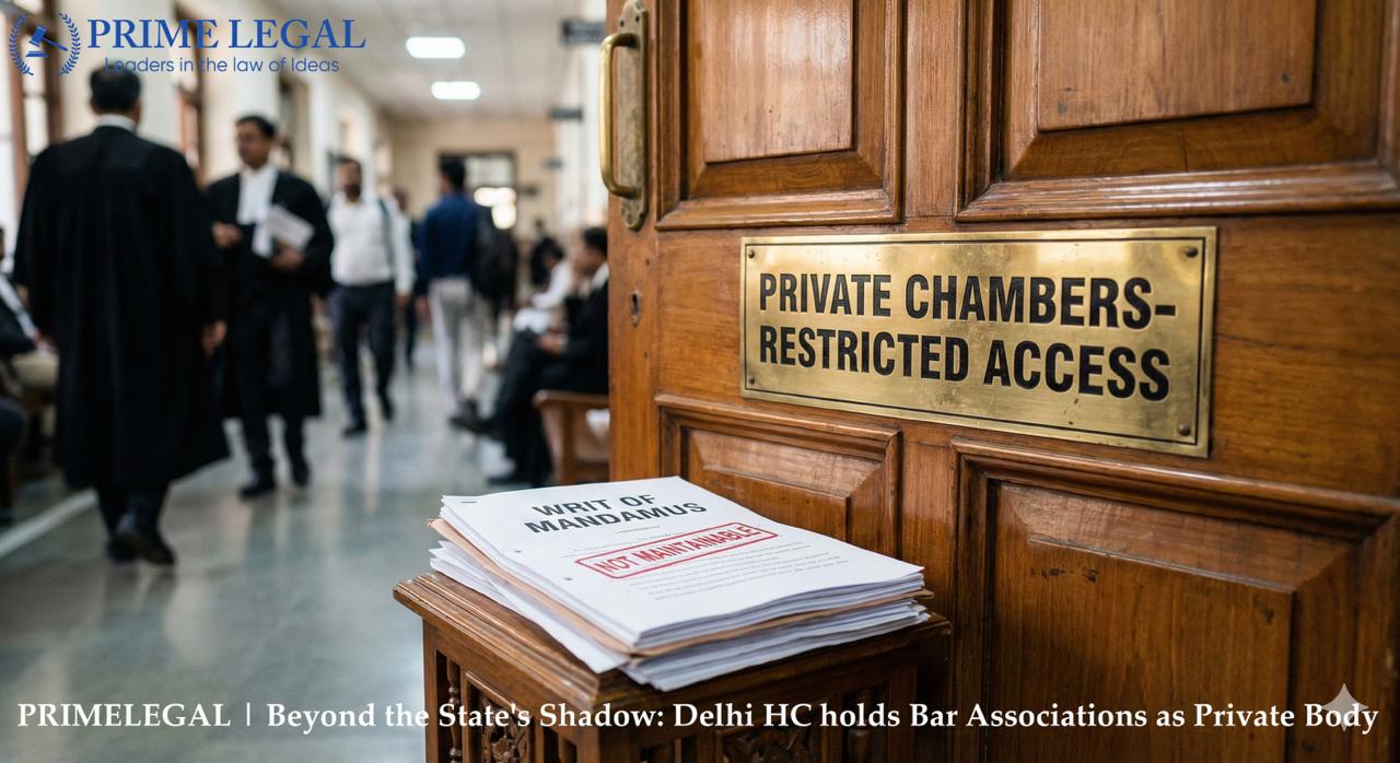 The Division Bench upheld the finding of the Single Judge that the appellant was not an allottee of the chamber; he only held it permissively as an allottee. As he had no legal right to the chamber, he could not seek relief under the writ jurisdiction to get possession of it. The Court further held that Prayer ‘B’ was not maintainable as it prayed for the issuance of a writ of mandamus against the Bar Association, which was a private body registered under the Societies Registration Act, 1860, whose main object was the welfare of its members. As the Bar Association does not carry out any public functions, it does not fall within the meaning of Article 12, and as such, no mandamus could be issued against it.